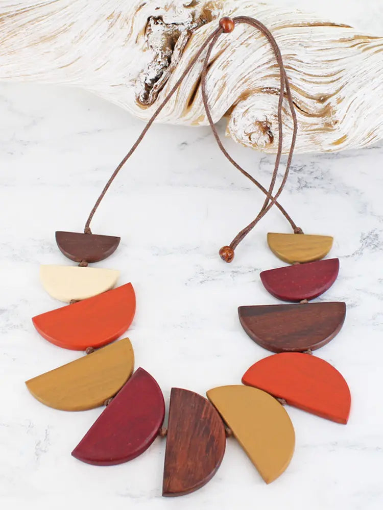 Bee WOODEN HALF MOON FAN NECKLACE MRC