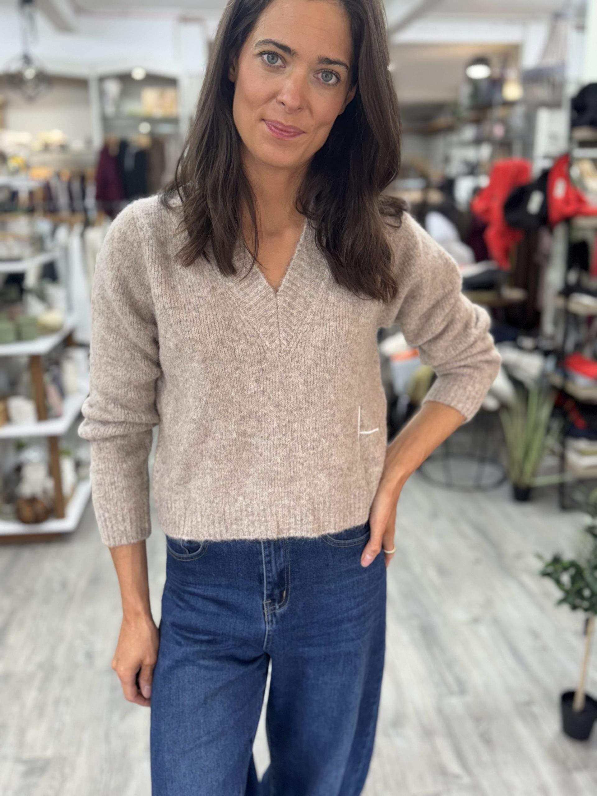 Hést Sofie V-neck Sweater Sand